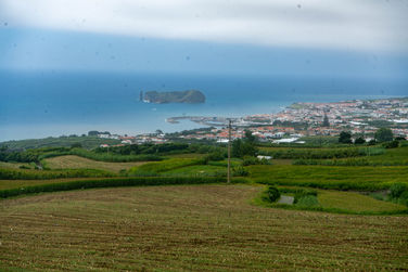A panoramic view over the agricultural lands of the Southeastern part of the island. A great view of the patchwork of green fields, the walls of lava stone separating the lands, the colorful flowers and the ocean in the background. A spot not to be missed.