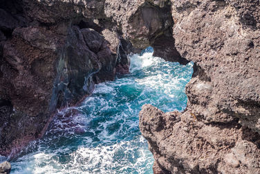 The bathing area of Biscoitos consists of natural pools contained among the various configurations of black rocks from volcanic eruptions.