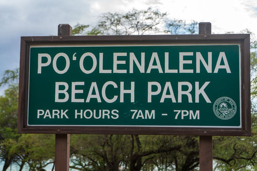Po'olenalena means "yellow head". It's also known as Paipu Beach. It is a nice, long sandy beach with spectacular sunset views. It is a favorite location for wedding ceremonies. During the week it is less crowded and mostly popular with local families. The parking lot is a nice size, but of course on weekends you'll often have a tough time finding a spot. Snorkeling is good around the rocky outcroppings at the south end of the beach. The sandy bottom is sloped gently for pleasant swimming and playing. There is a port-a-potty at the north parking lot and a shower at the south entry.
