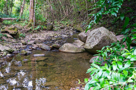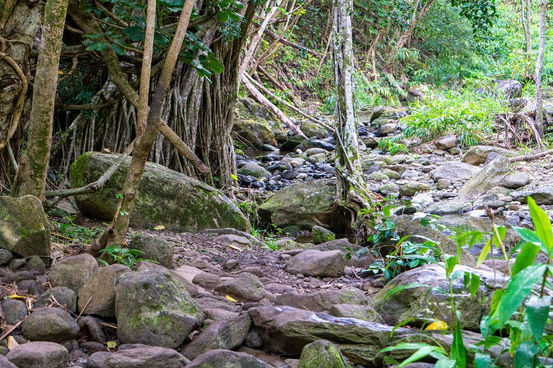 The Makamaka'ole Falls Trail, is also known as 13 Crossings, You will cross Makamaka'ole Stream 13 times and these crossings are often not very easy. The falls reside in the West Maui Forest Reserve in Wailuku, You will encounter a dense bamboo forest along the way as well as Guava trees and fruit throughout the hike. The trail is often very narrow in places so watch your footing.